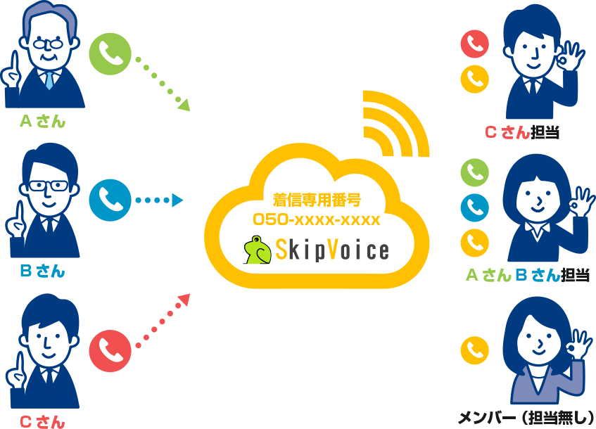 - ※SkipVoiceにて受信専用番号(「050」)を提供します。